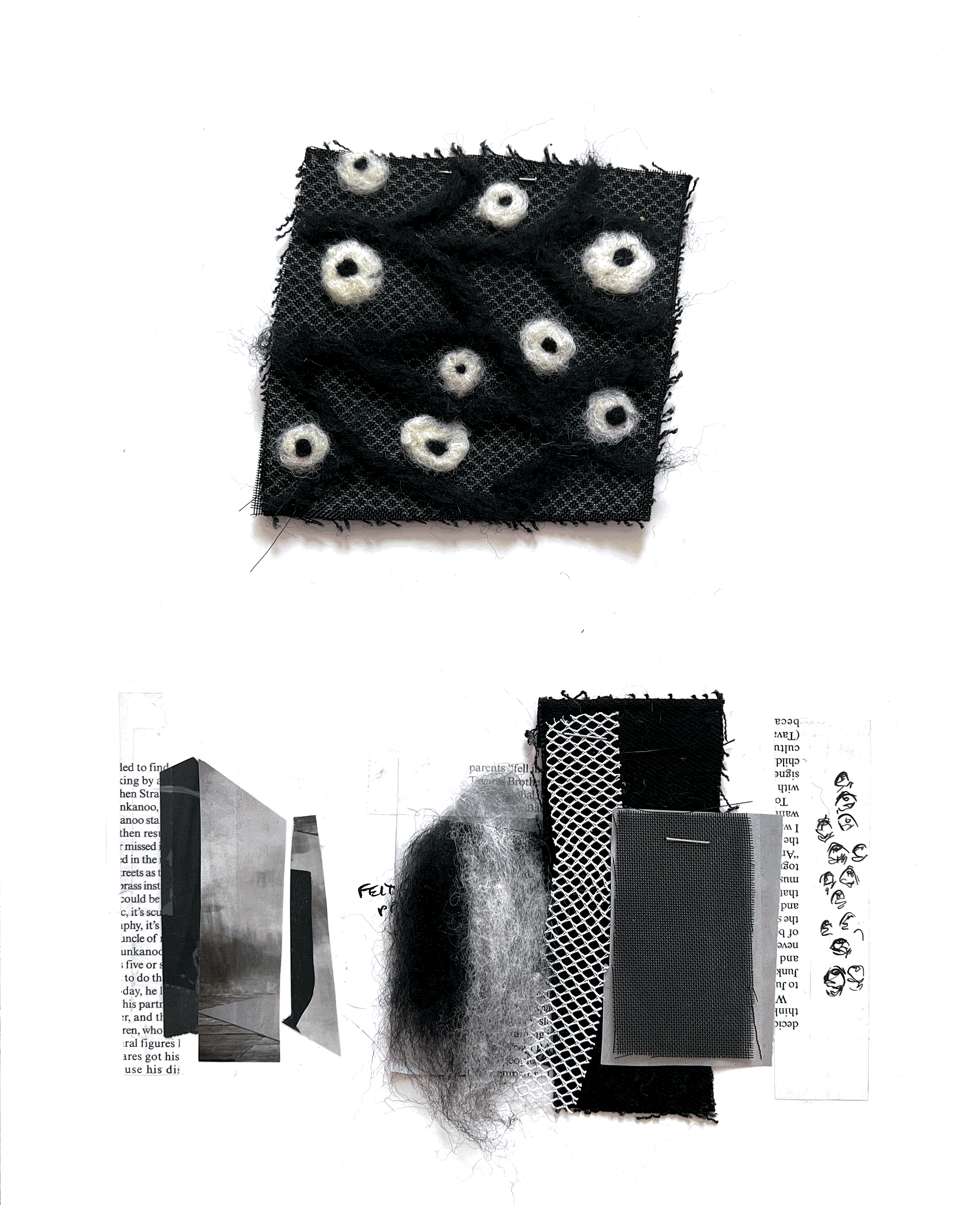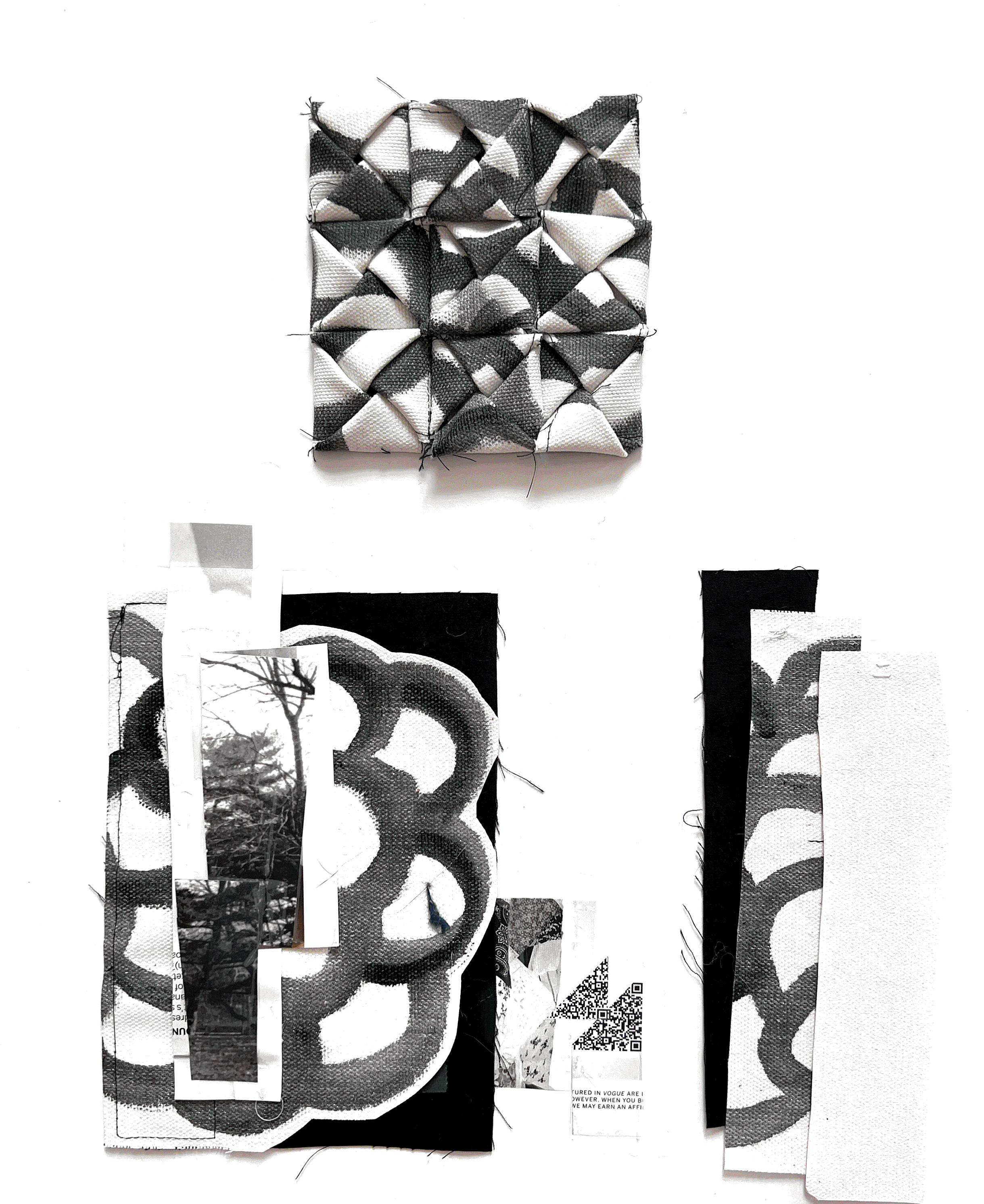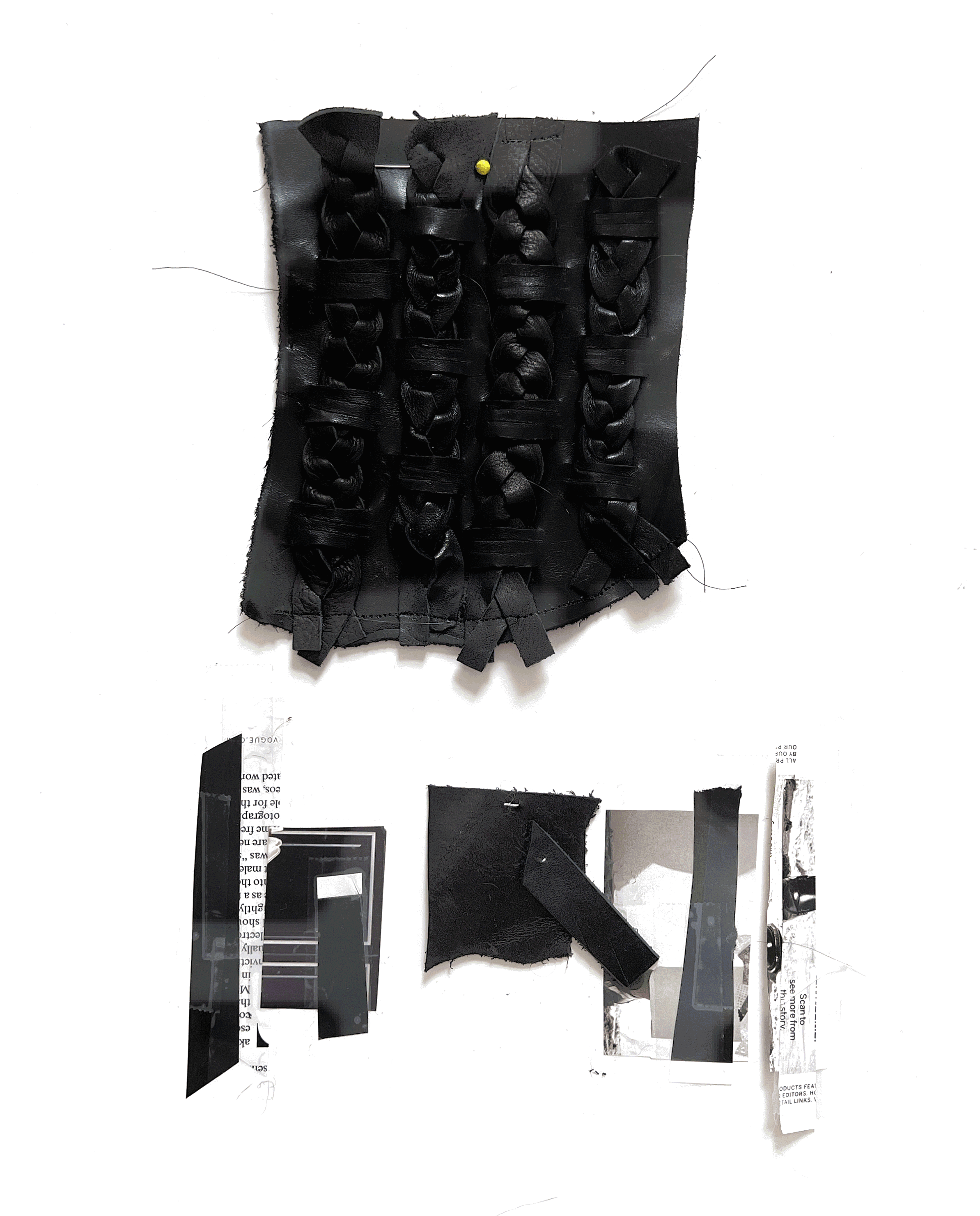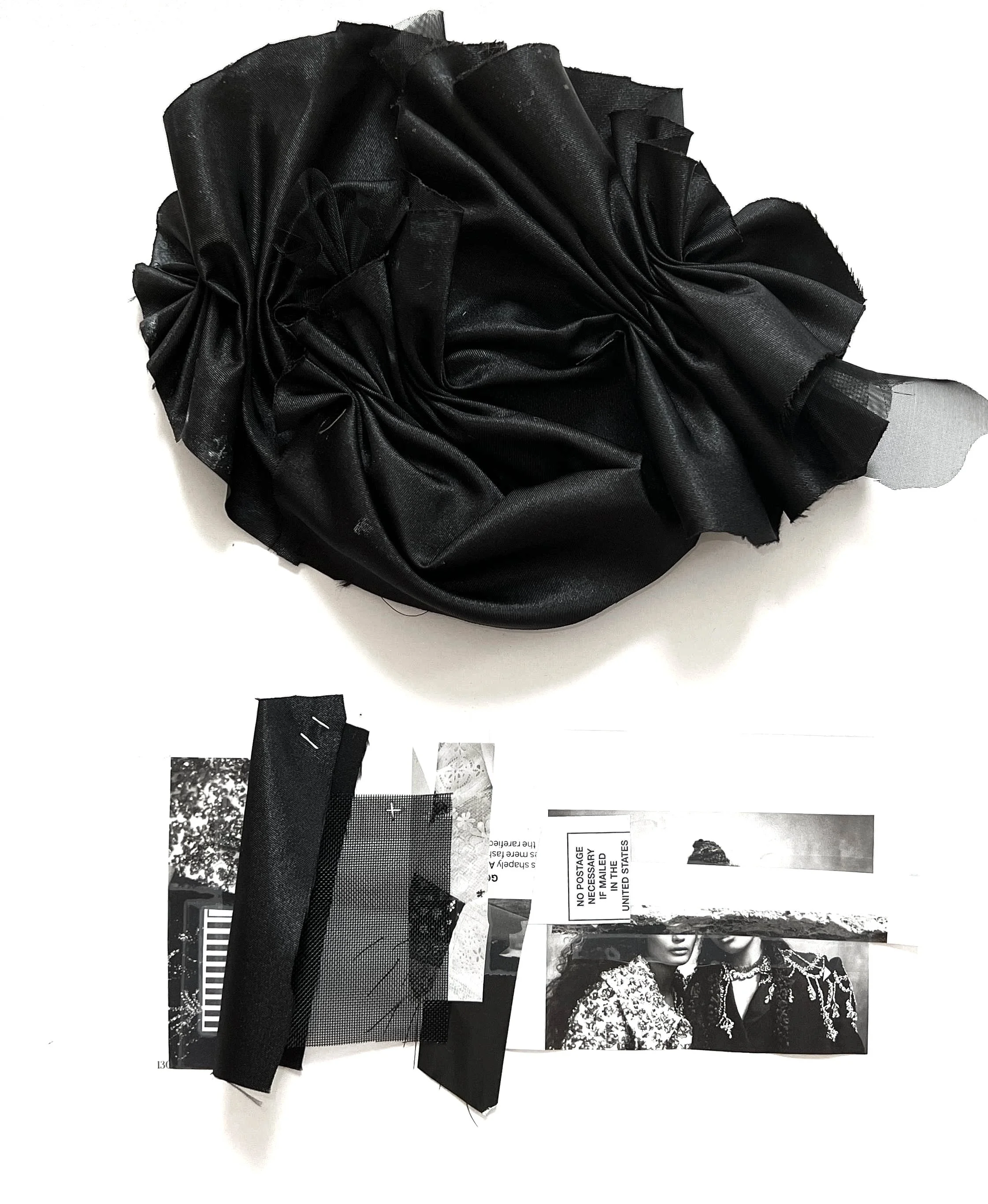 An exploration of fabric manipulation using discarded remnants as art and for application in design.
